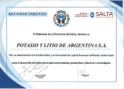 薩爾塔省政府表彰證書
